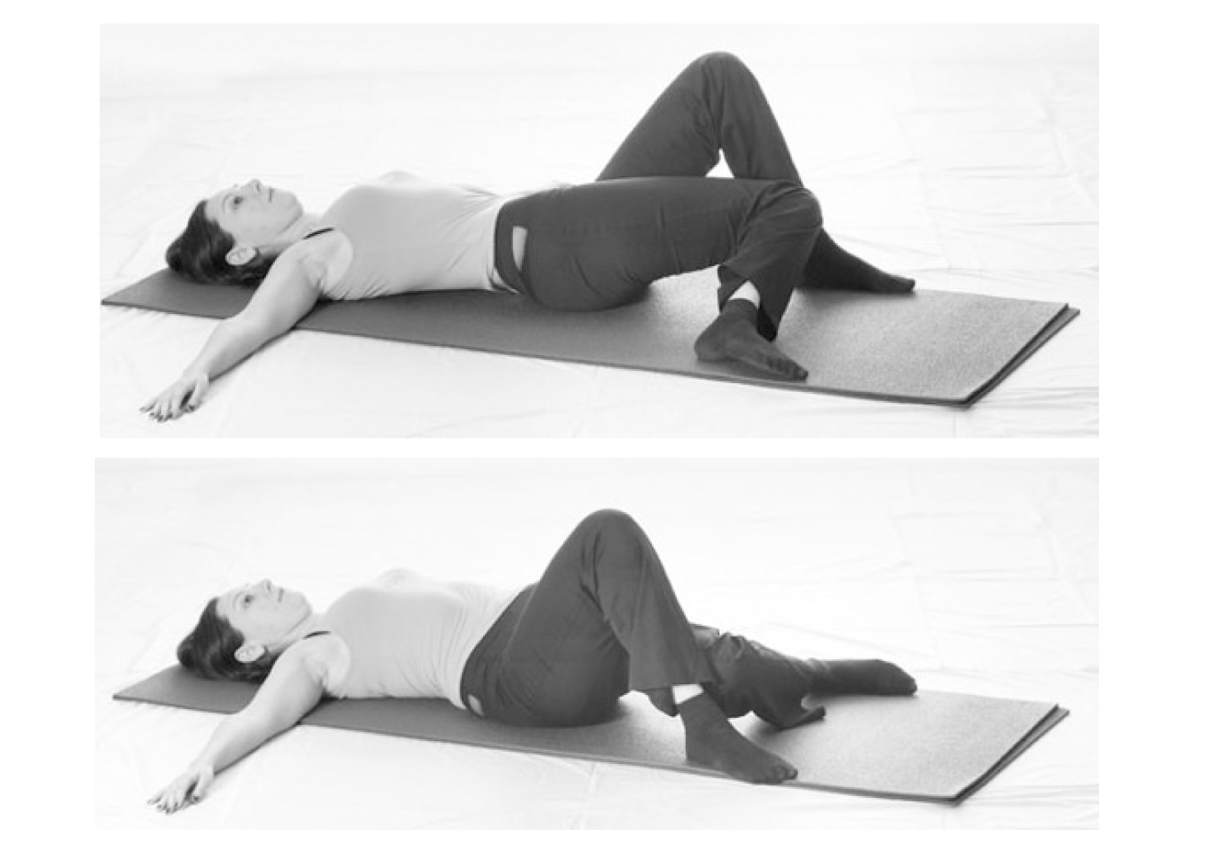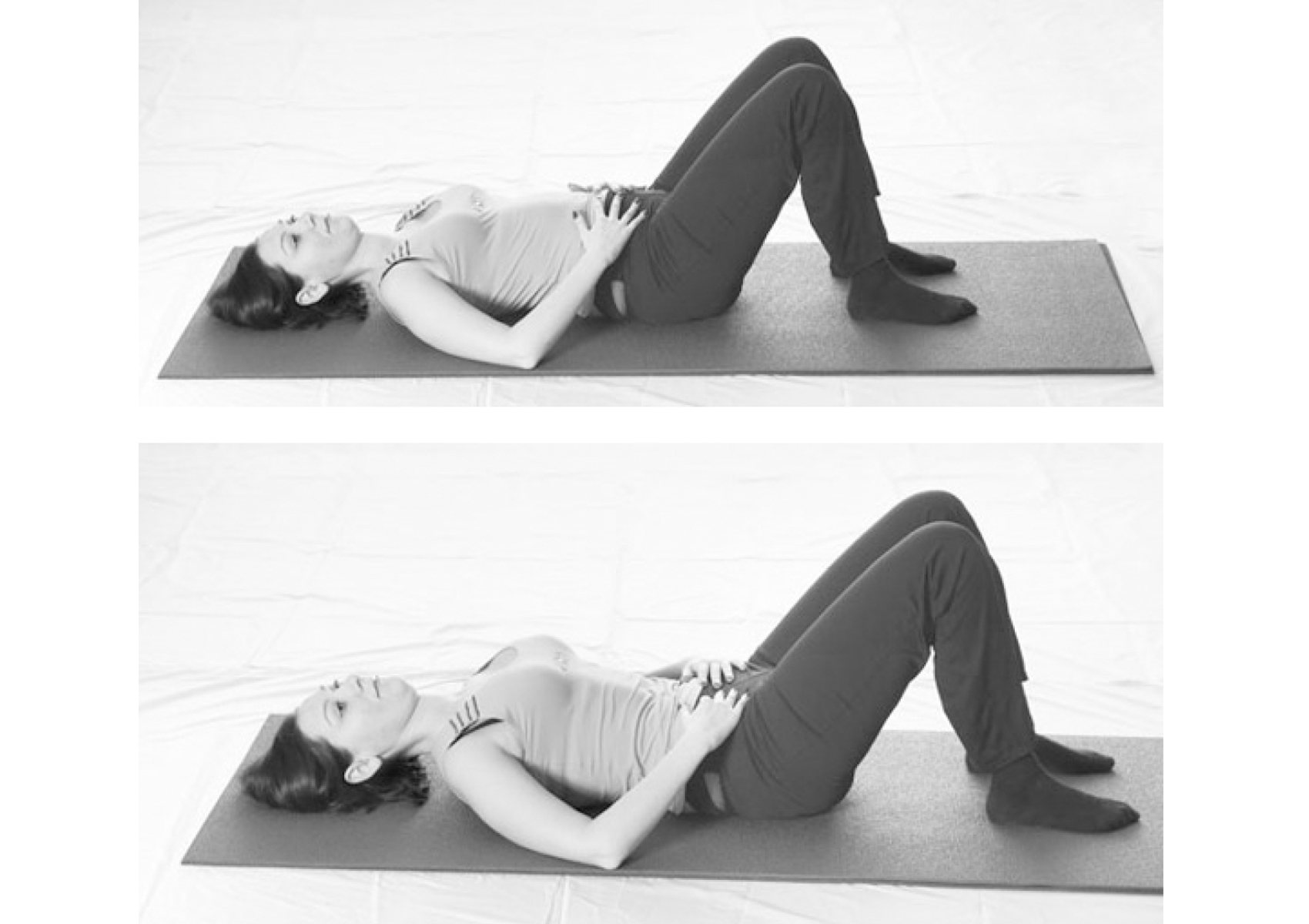 • Исходное положение лежа на спине, ноги согнуты в коленях, руки – на животе.