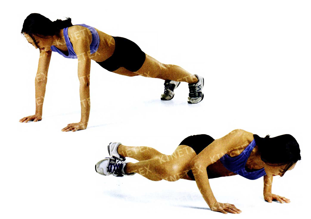 • Выполните 4—6 повторений и поменяйте руки так, чтобы левая упиралась в пол, а правая находилась на степ-платформе.