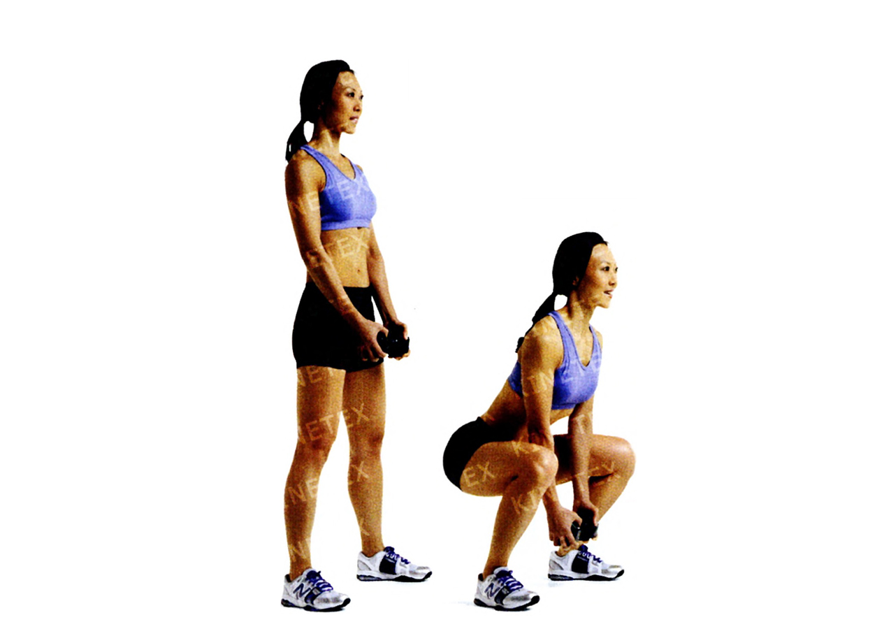 • Присядьте как можно ниже, отводя таз назад и сгибая ноги в коленях.