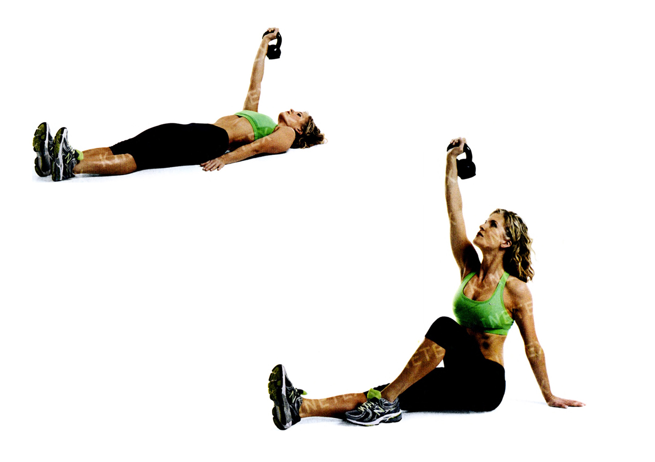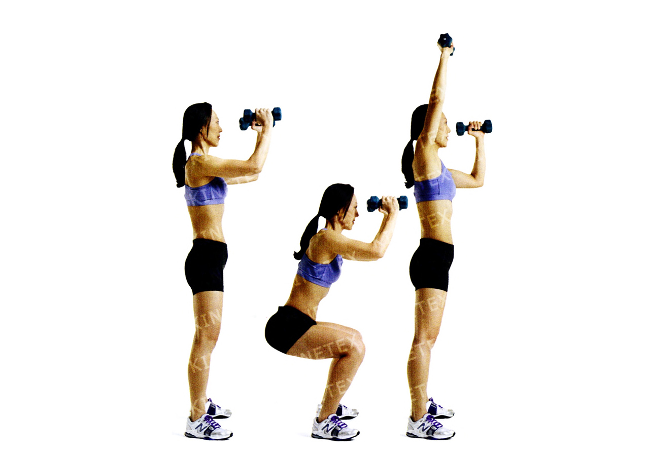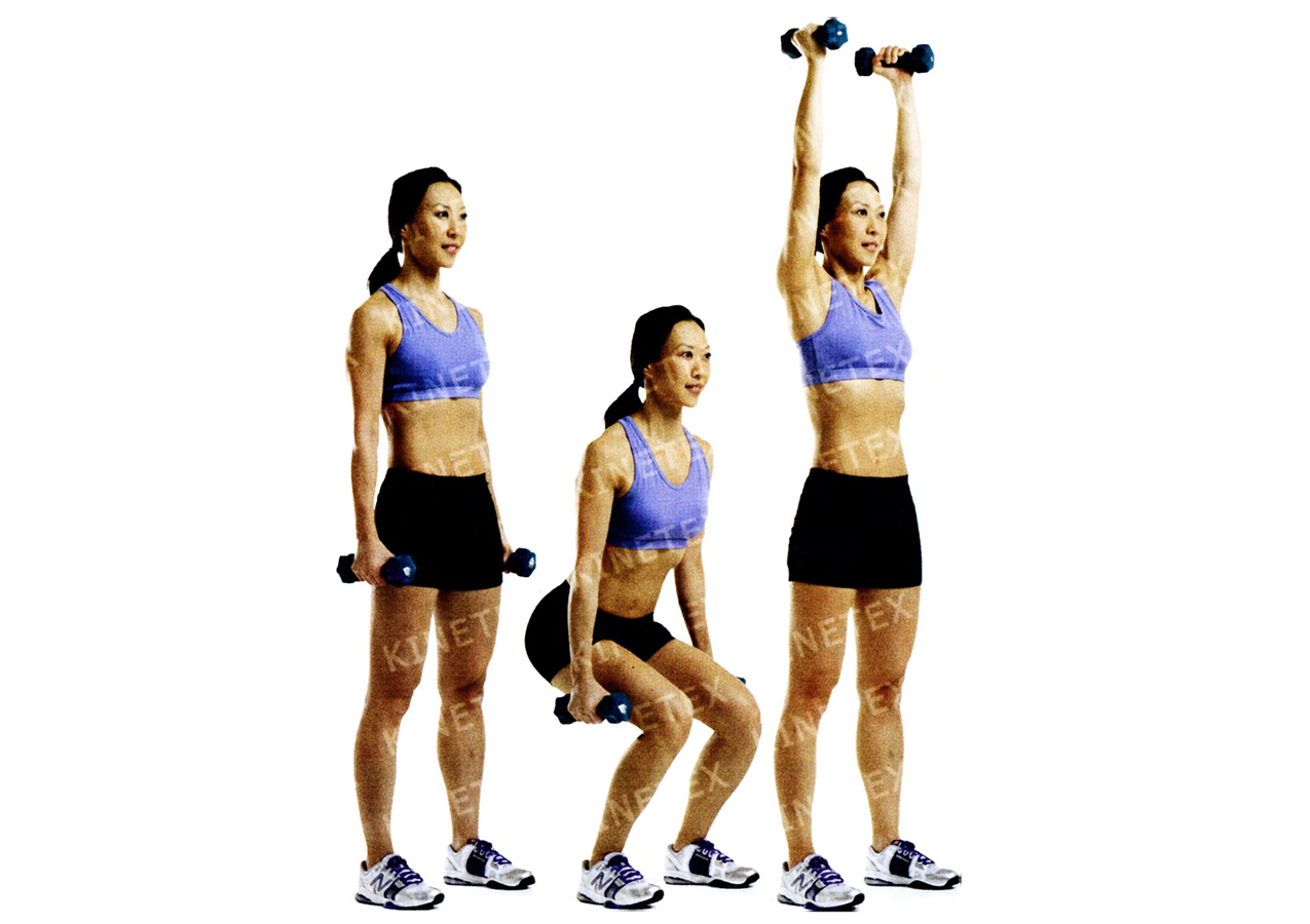 • Опираясь на пятки, встаньте и выжмите мяч над голо вой.