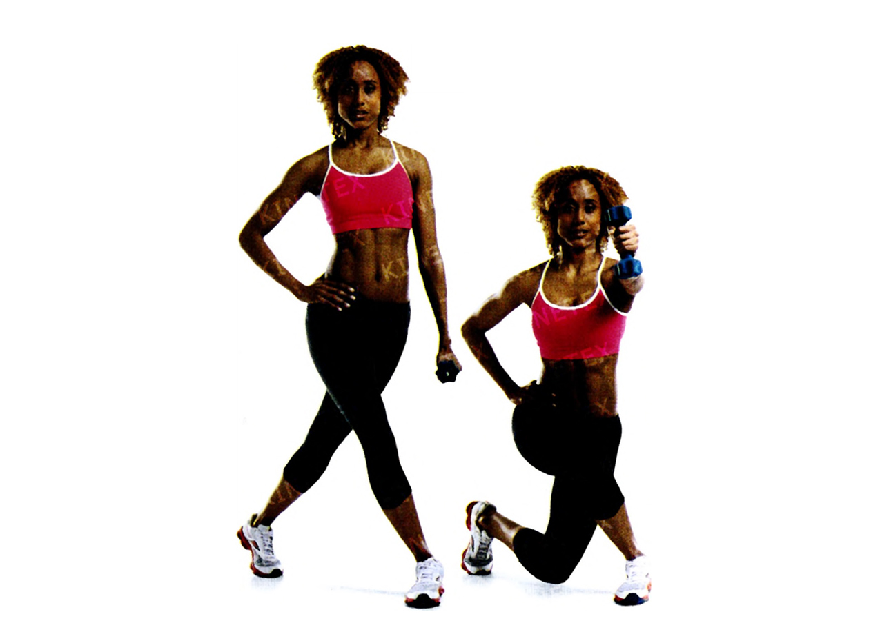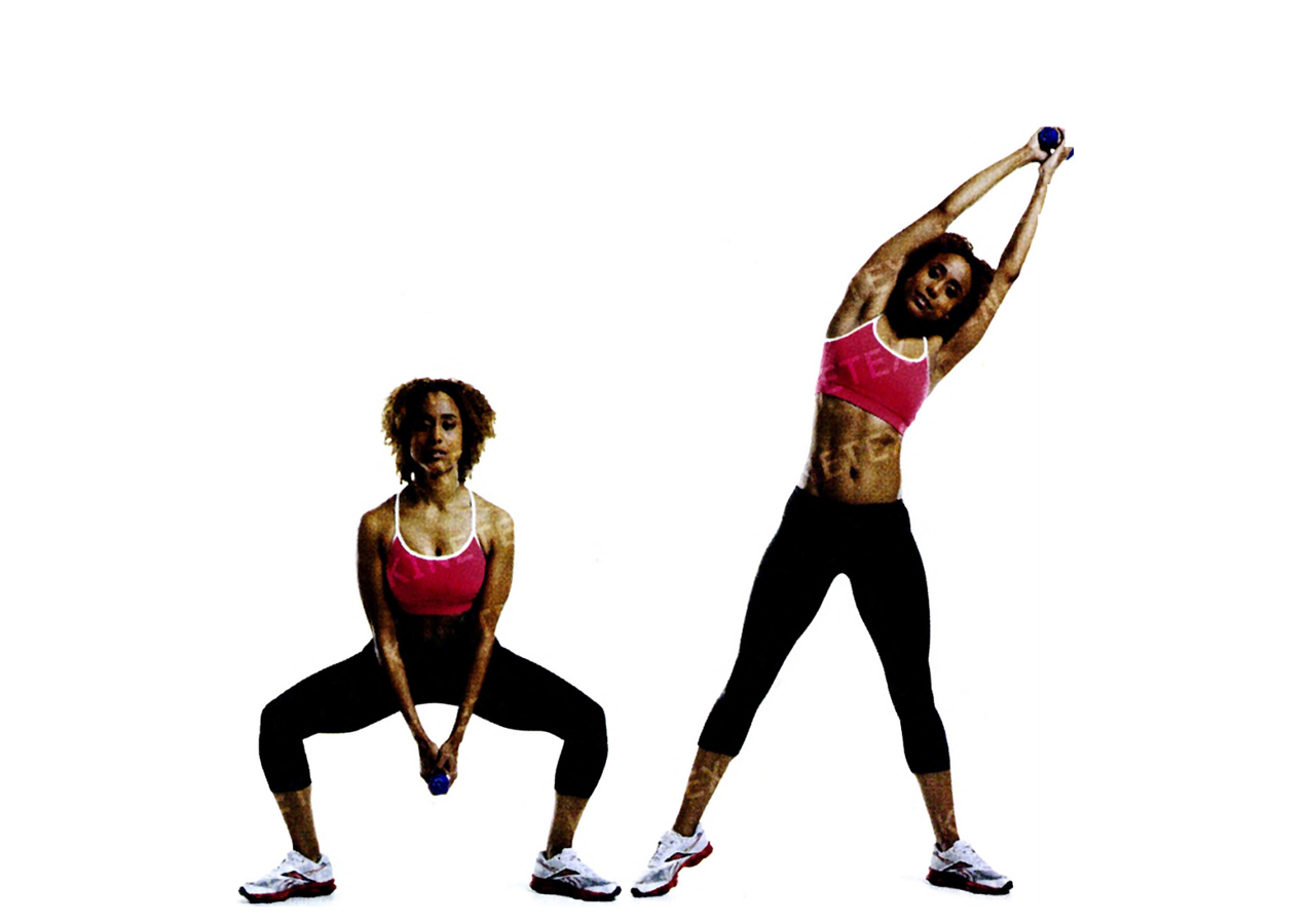• Поднимите руки с гантелями к плечам.