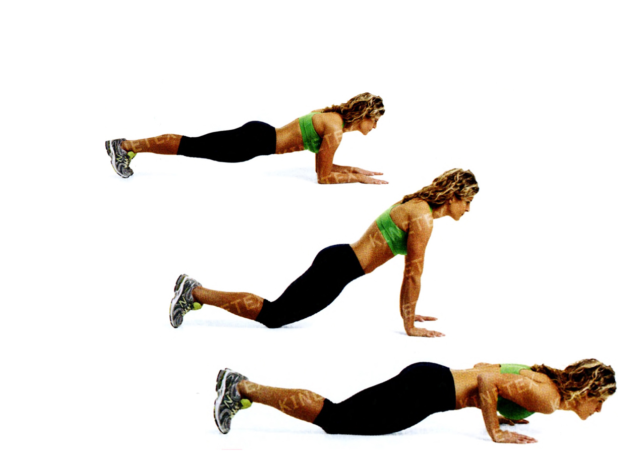 • Опустите колени на иол и выпрямите руки, принимая модифицированную позу планки.
