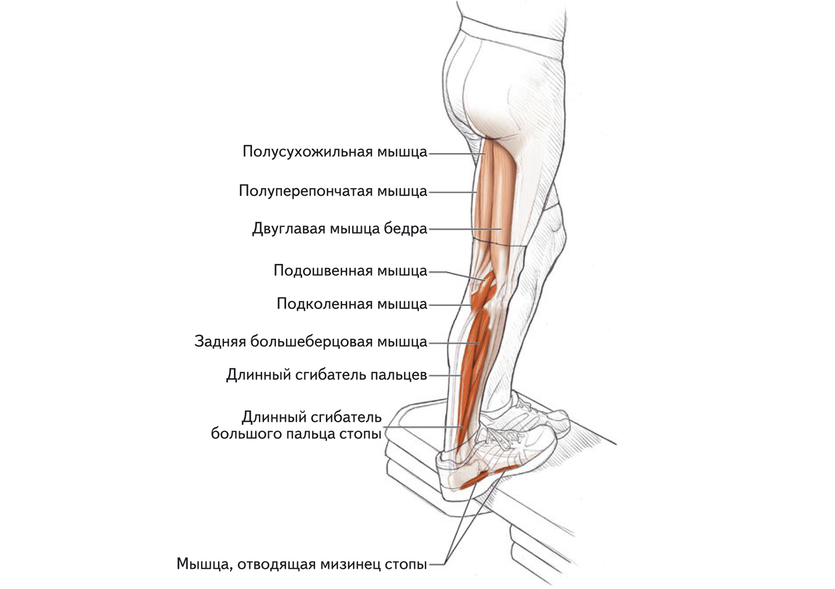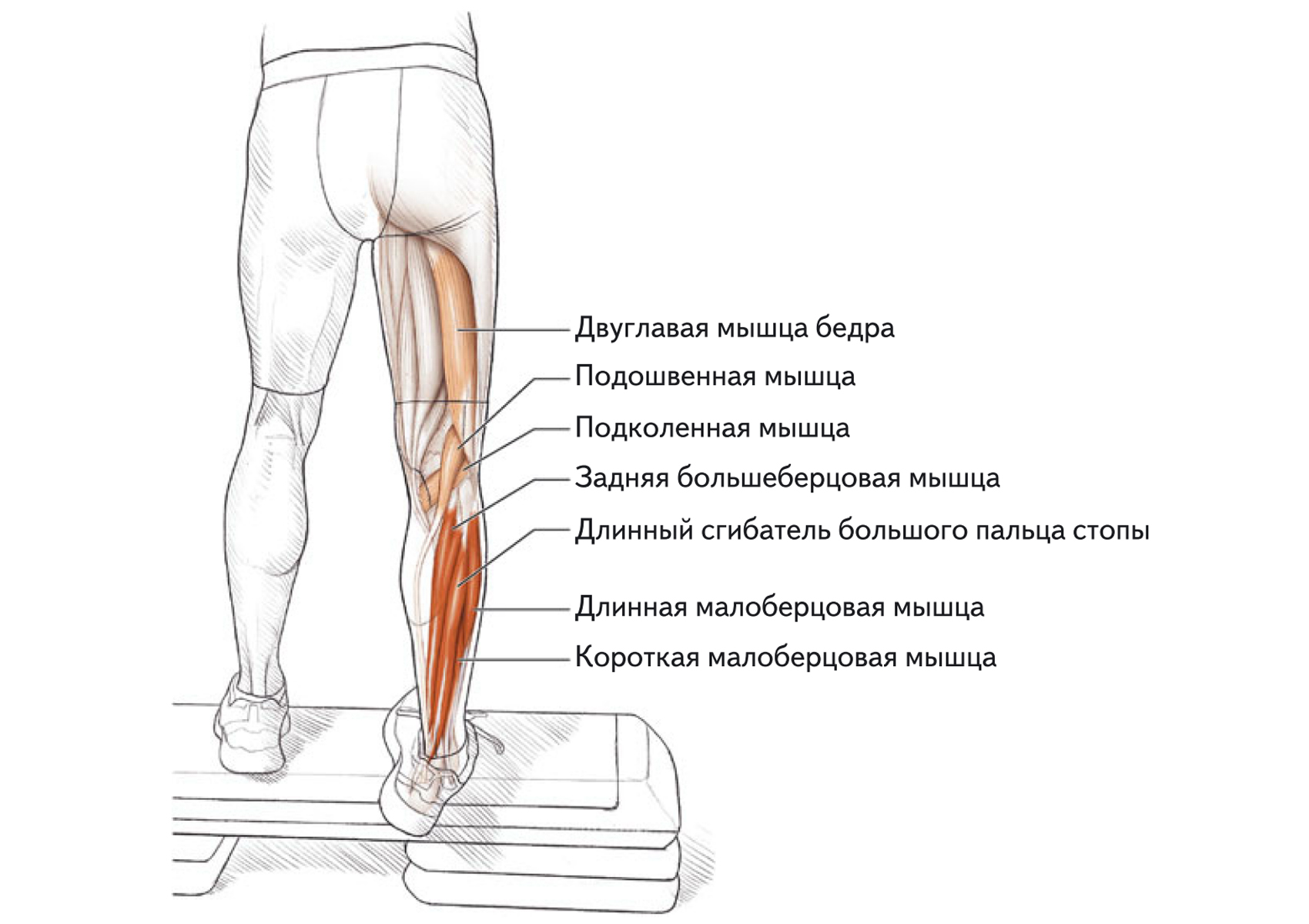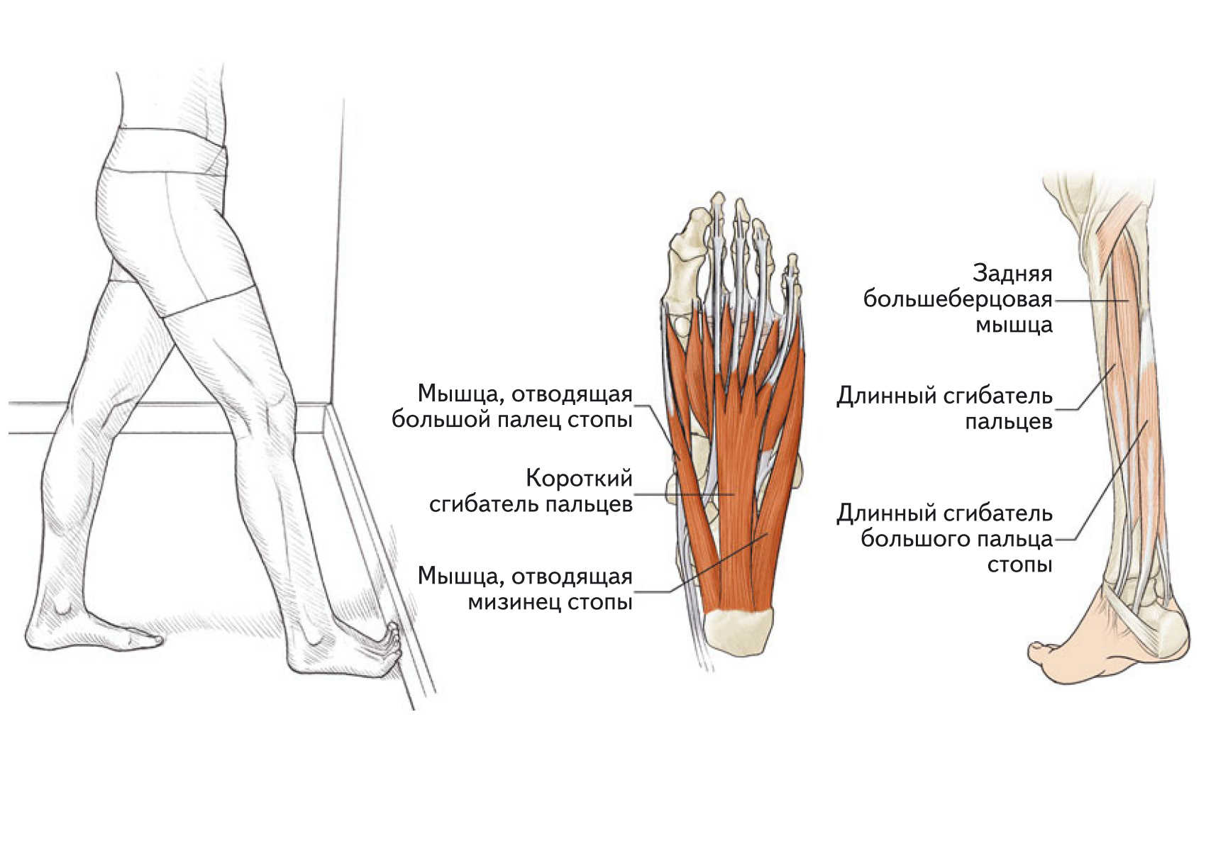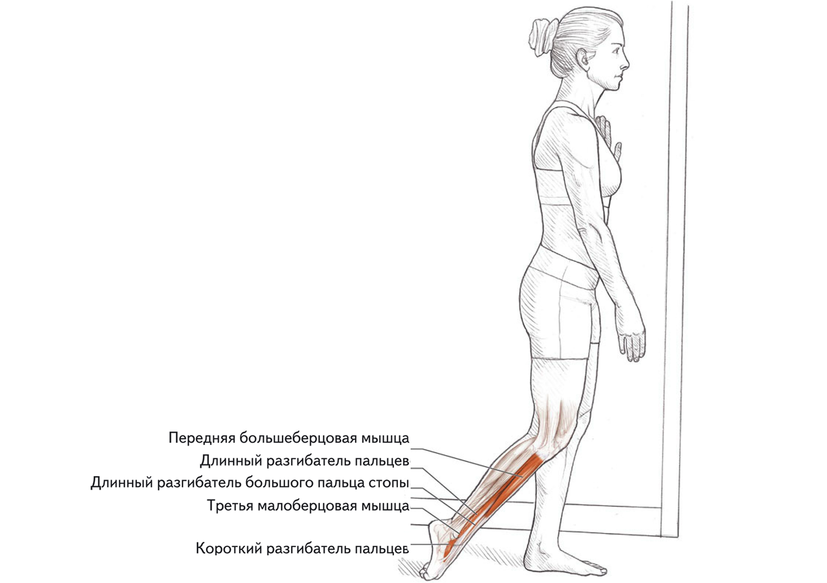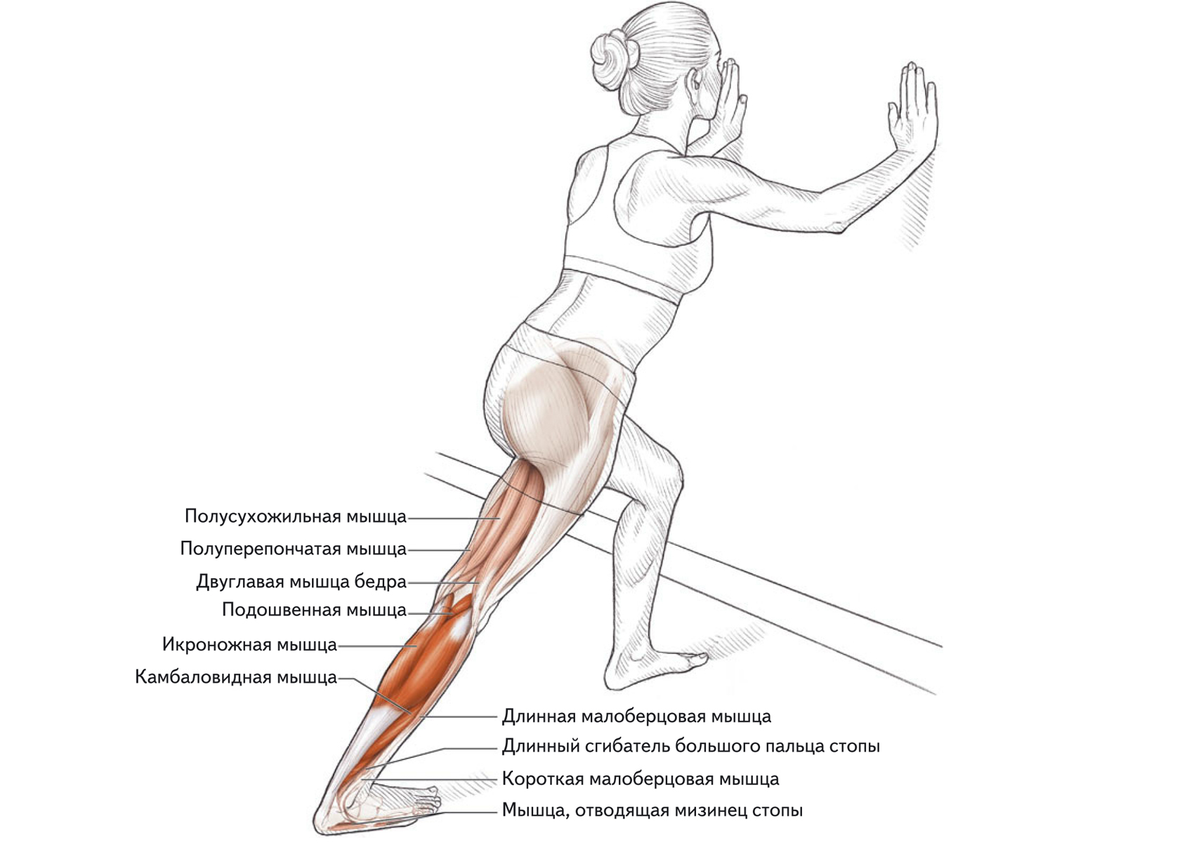 Растяжка мышц, осуществляющих подошвенное сгибание стопы и поворачивающих ее внутрь.