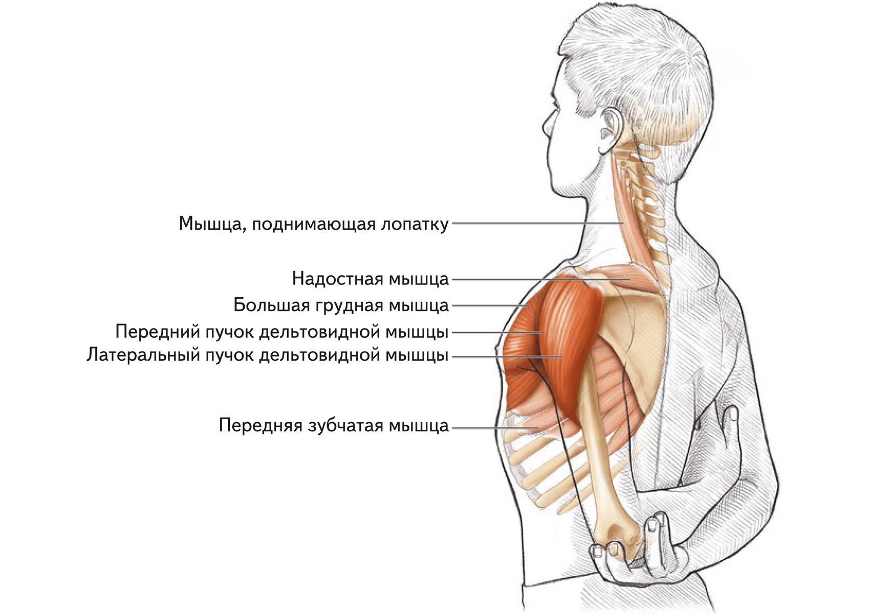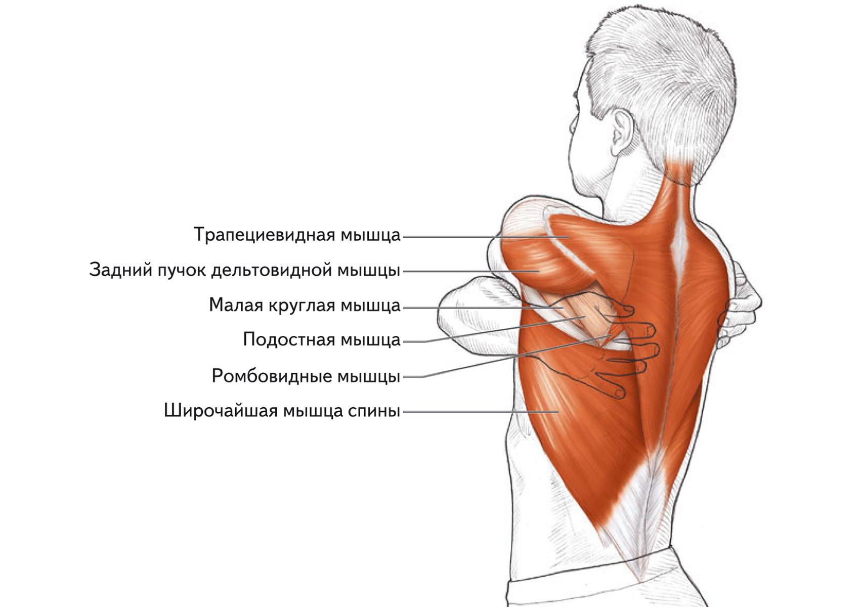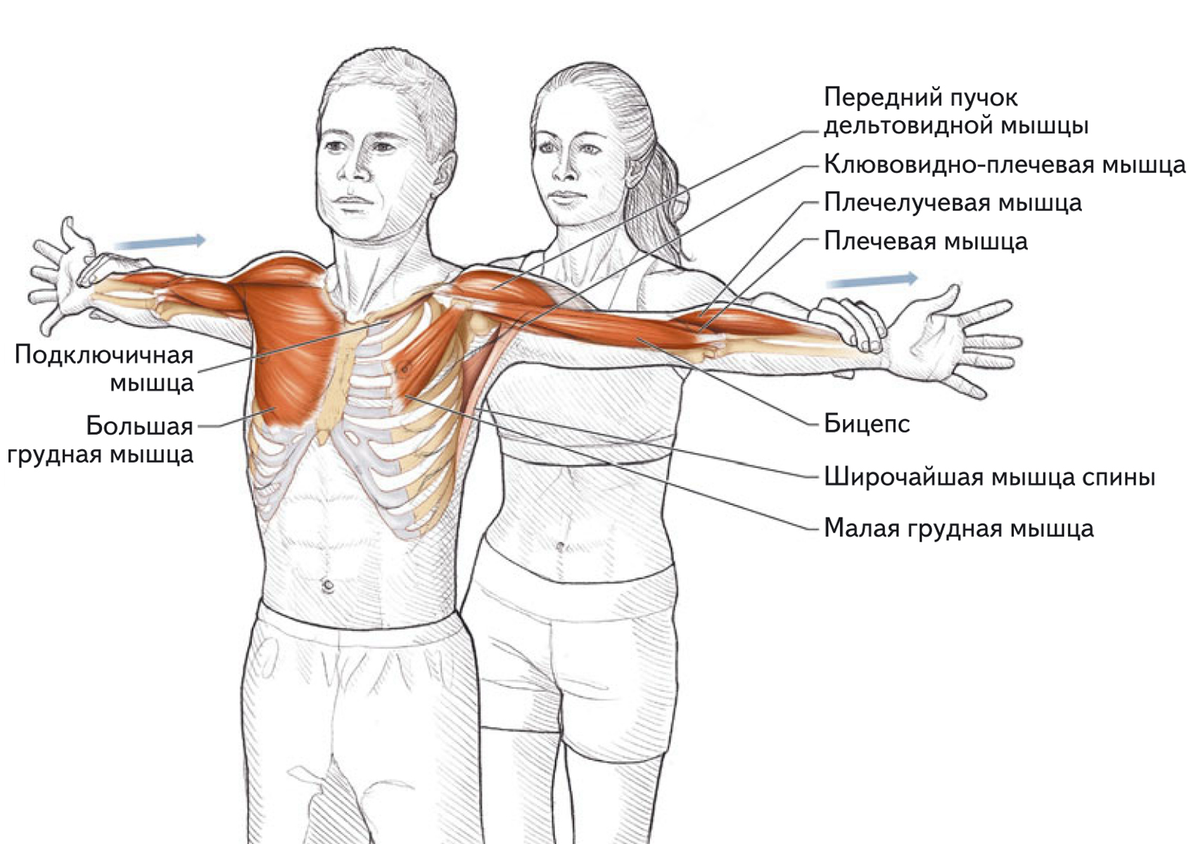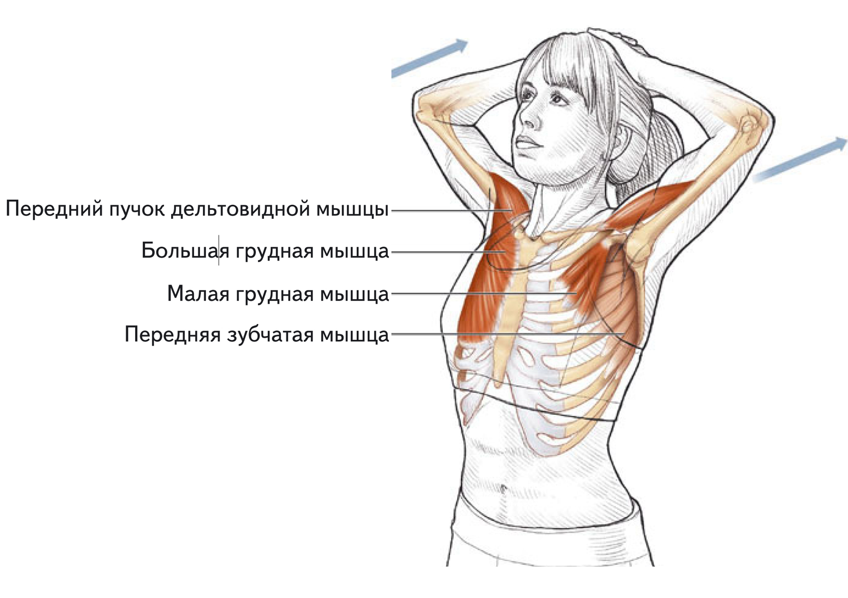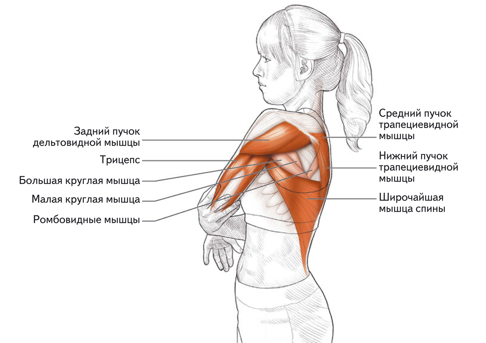 Растяжка мышц, отводящих руку в плечевом суставе.