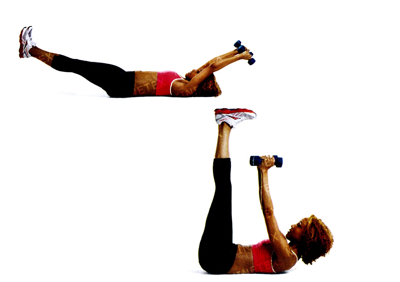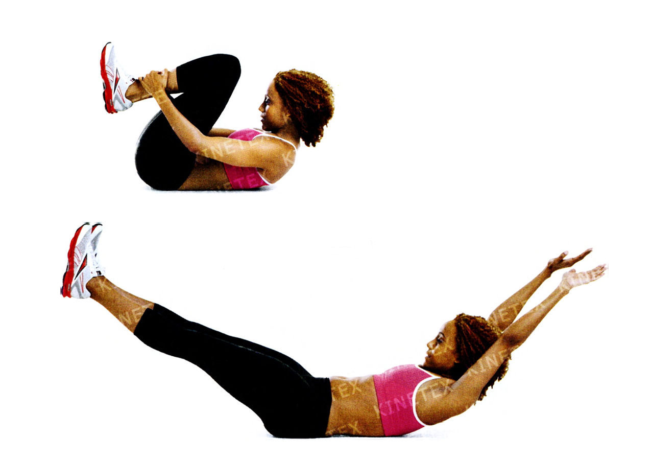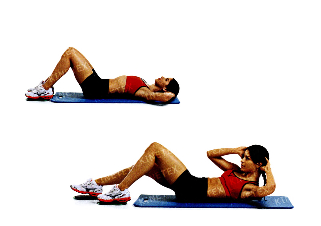 • Одновременно приподнимите руки, голову и плечи. После небольшой паузы вернитесь в исходное положение. Это одно повторение.