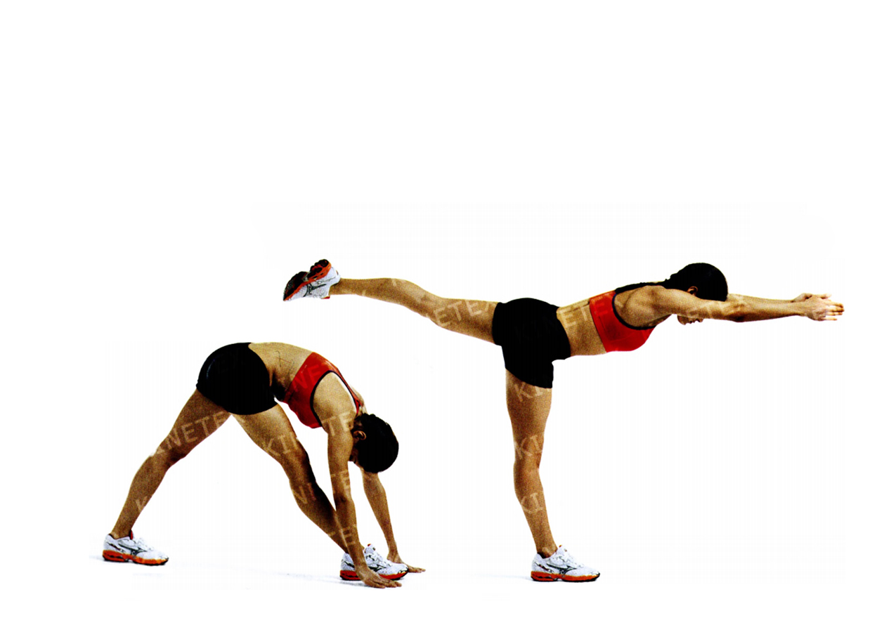 • Тяните правую руку вертикально вверх, поворачивая голову вслед за ней так, чтобы подбородок оказался на одной вертикальной линии с правой подмышкой.